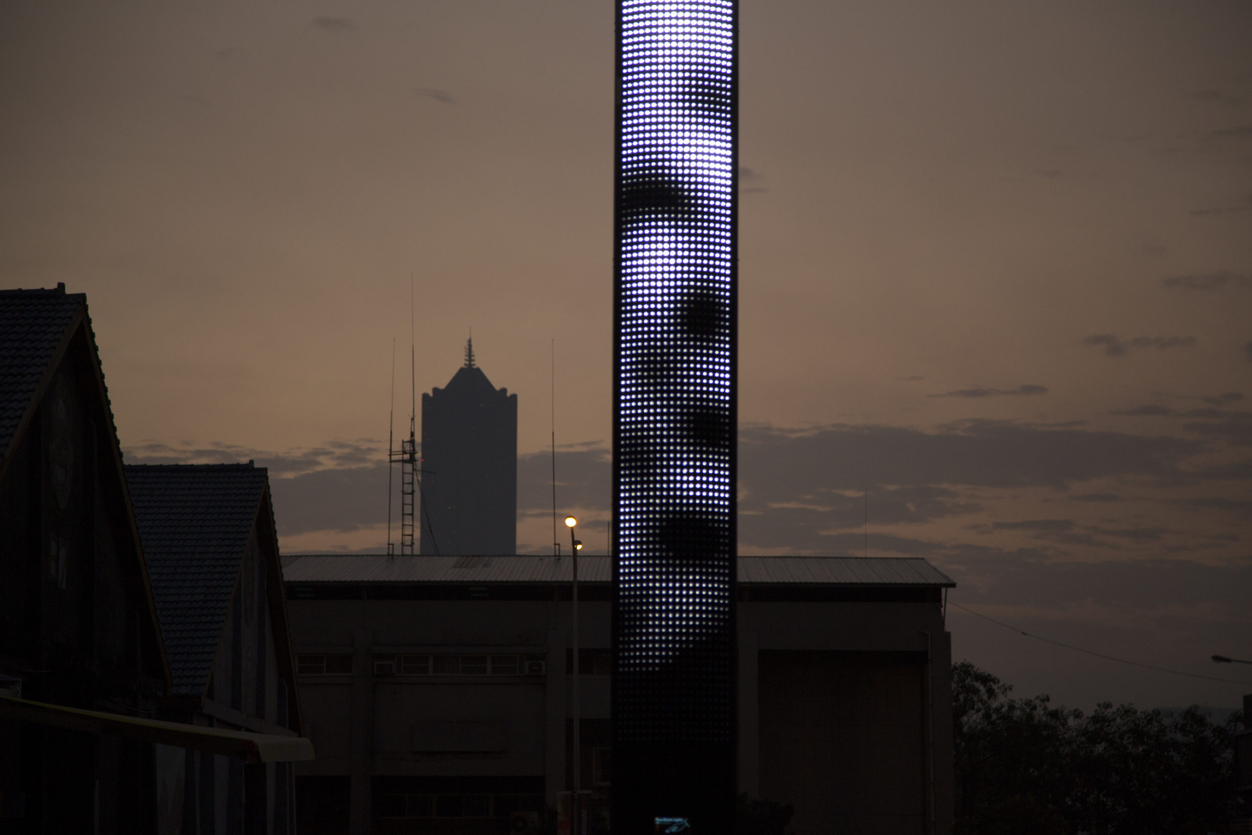 Heart Beats Lights met en scène la confrontation entre la dimension intime de l’être humain et la dimension collective de l’espace urbain. Le dispositif se présente comme une sculpture d’une hauteur de 9 mètres. Détournant les codes propres au mobilier urbain, elle supporte un ensemble de leds monochrome complété par un dispositif de diffusion sonore jouant sur une spatialisation verticale. Au repos, la sculpture offre des variations s’inscrivant à l’échelle du paysage environnant. A la base du dispositif, des capteurs cardiaques permettent à deux interacteurs de prendre le contrôle de l’œuvre. Les battements de leurs cœurs sont amplifiés, servant de support rythmique à une composition lumineuse et sonore, sorte de rituel ou les corps des interacteurs deviennent un élément connecté à l’ensemble de la sculpture.