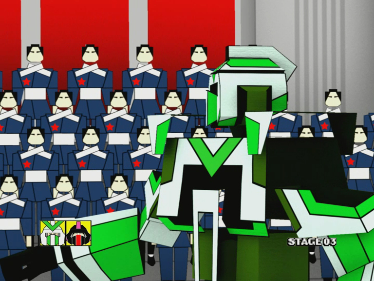 Le jingle MTV est un hommage aux films du cinéma Hong-Kongais et à la culture asiatique en général. Sous la forme d’un jeu vidéo à 3 niveaux, 2 personnages s’affrontent en se transformant successivement en un couple japonais traditionnel, en révolutionnaires chinois, et enfin en robots Gundam contemporains. Le style graphique de type papier découpé se mélange à une animation et un montage extrêmement rapides, souligné par une musique électro ajoutant une touche finale d’humour à la mise en scène.